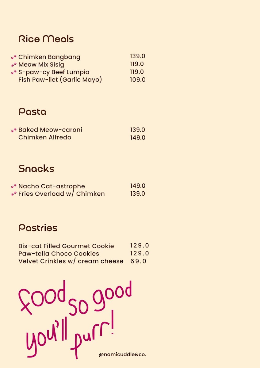 Nami's Cuddle & Co Menu